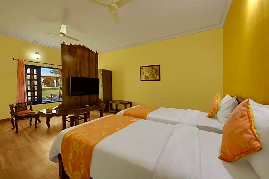 When it’s time to unwind, Hariyali Dhani Camps & Desert Resort With Swimming Pool, Jodhpur offers a wonderful outdoor pool exclusively for adults, perfect for a refreshing dip after a day of exploring. Surrounded by lush garden views, the pool area provides a peaceful retreat under the sun, ideal for relaxing solo or with a companion. Whether you prefer to lounge poolside with a good book or enjoy a swim to cool off, this feature adds a touch of luxury to your stay.
